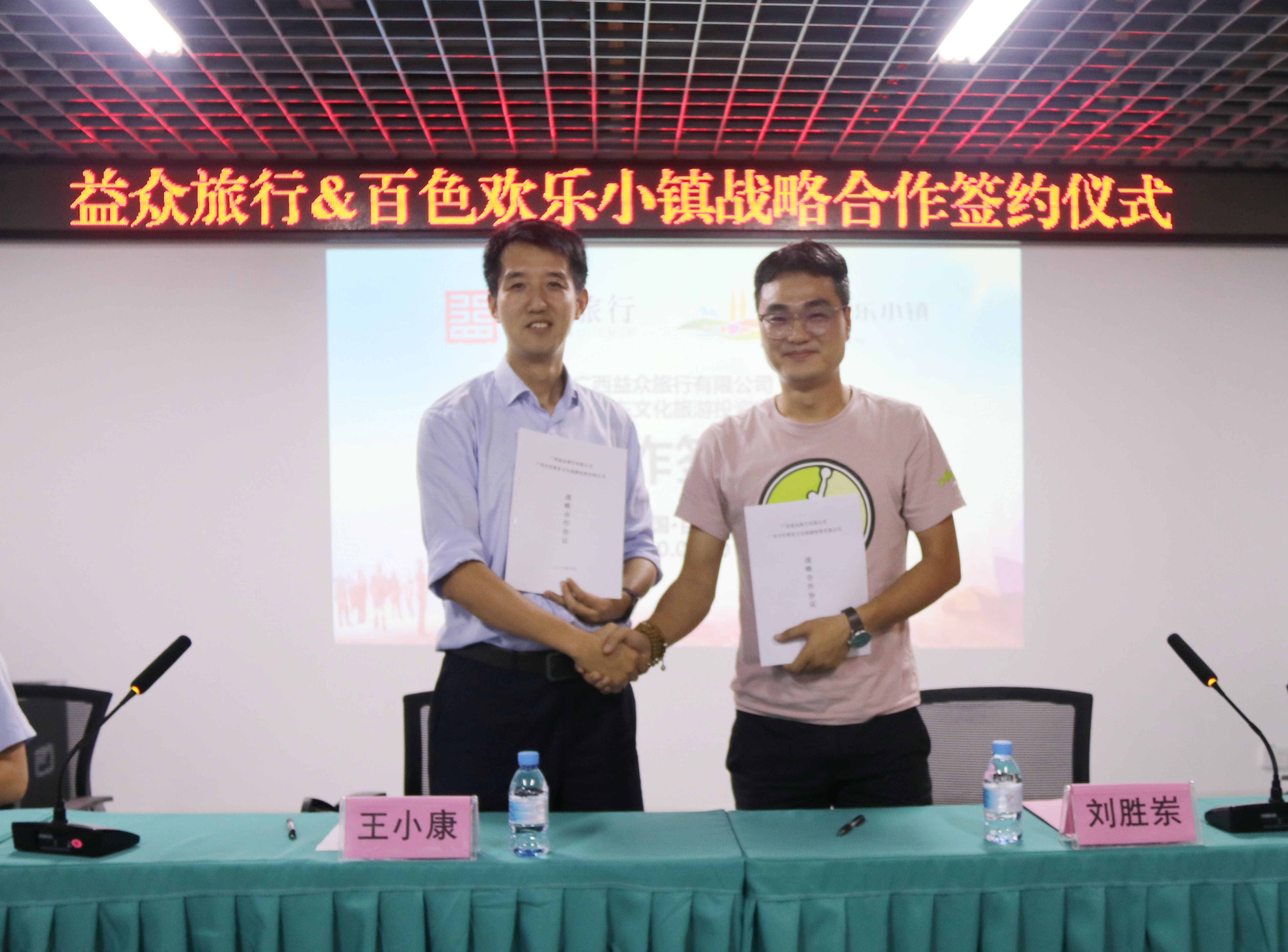 ????????9月30日,廣西益眾旅行有限公司與廣西百色智東文化旅游投資有限公司舉行戰(zhàn)略合作簽約儀式。廣西益眾旅行有限公司副總經(jīng)理王小康、百色歡樂(lè)小鎮(zhèn)總經(jīng)理方挺斌、廣西百色智東文化旅游投資有限公司副總經(jīng)理劉勝崠出席儀式。