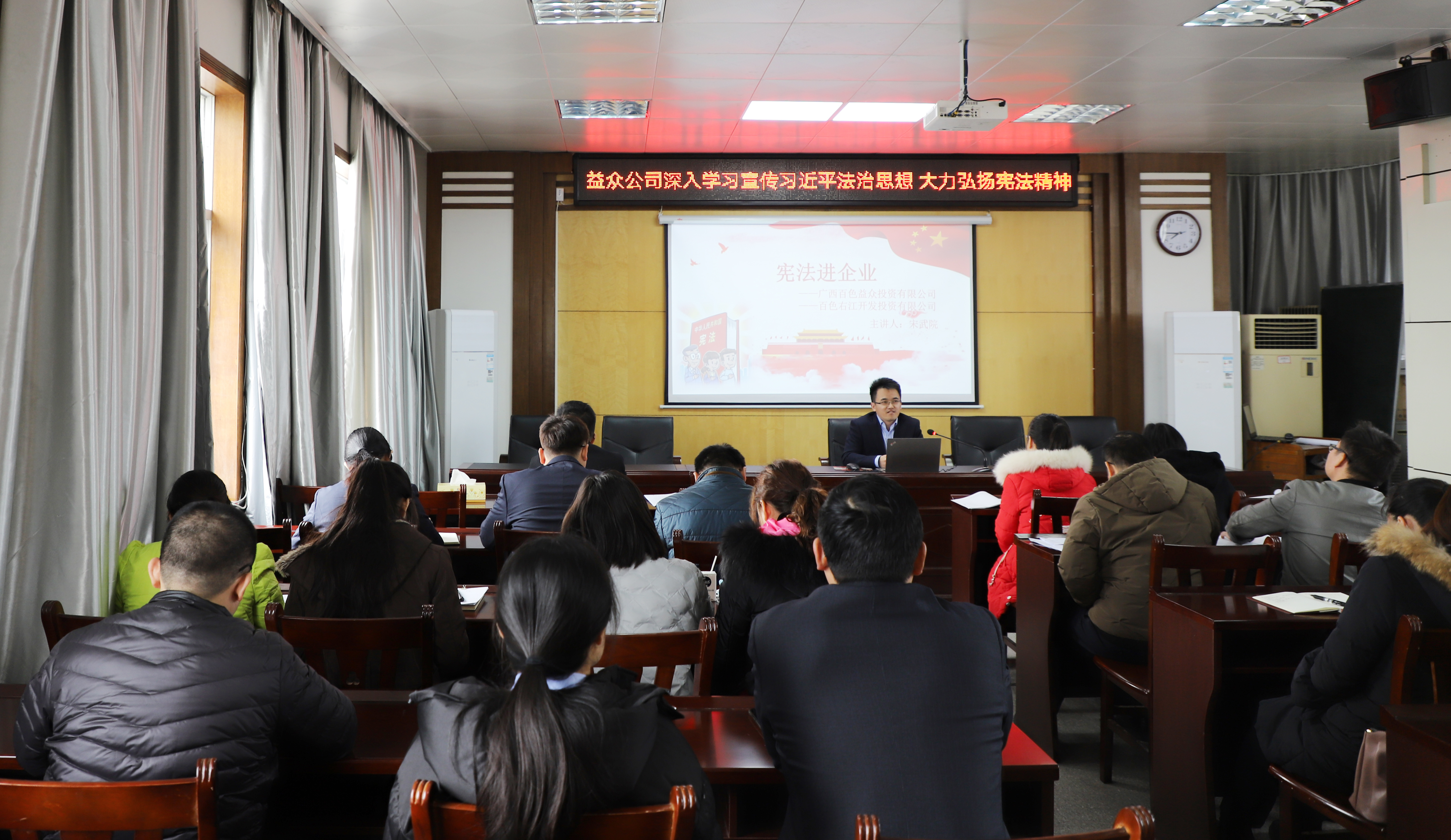 ????????為貫徹落實2020年百色市右江區(qū)“憲法宣傳周”活動的有關工作部署,營造良好的法治氛圍,弘揚憲法精神、維護憲法權威,按照《右江區(qū)2020年憲法進機關活動方案》要求,近日,益眾公司黨支部組織領導干部、黨員職工開展“憲法進企業(yè)”學習宣傳活動,深入學習宣傳習近平法治思想,大力弘揚憲法精神,積極引導員工尊法、學法、守法、用法,自覺尊崇憲法、維護憲法,深入推進全面依法治企進程。