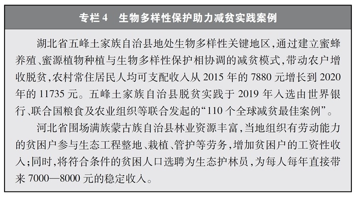 推動履約取得明顯成效。中國為推動實現(xiàn)2020年全球生物多樣性保護(hù)目標(biāo)和聯(lián)合國2030年可持續(xù)發(fā)展目標(biāo)作出積極貢獻(xiàn)。自發(fā)布《中國生物多樣性保護(hù)戰(zhàn)略與行動計劃》(2011—2030年)以來,中國通過完善法律法規(guī)和體制機(jī)制、加強(qiáng)就地和遷地保護(hù)、推動公眾參與、深化國際合作等政策措施,有力推動改善了生態(tài)環(huán)境。其中,設(shè)立陸地自然保護(hù)區(qū)、恢復(fù)和保障重要生態(tài)系統(tǒng)服務(wù)、增加生態(tài)系統(tǒng)的復(fù)原力和碳儲量等3項目標(biāo)超額完成,生物多樣性主流化、可持續(xù)管理農(nóng)林漁業(yè)、可持續(xù)生產(chǎn)和消費(fèi)等13項目標(biāo)取得良好進(jìn)展。