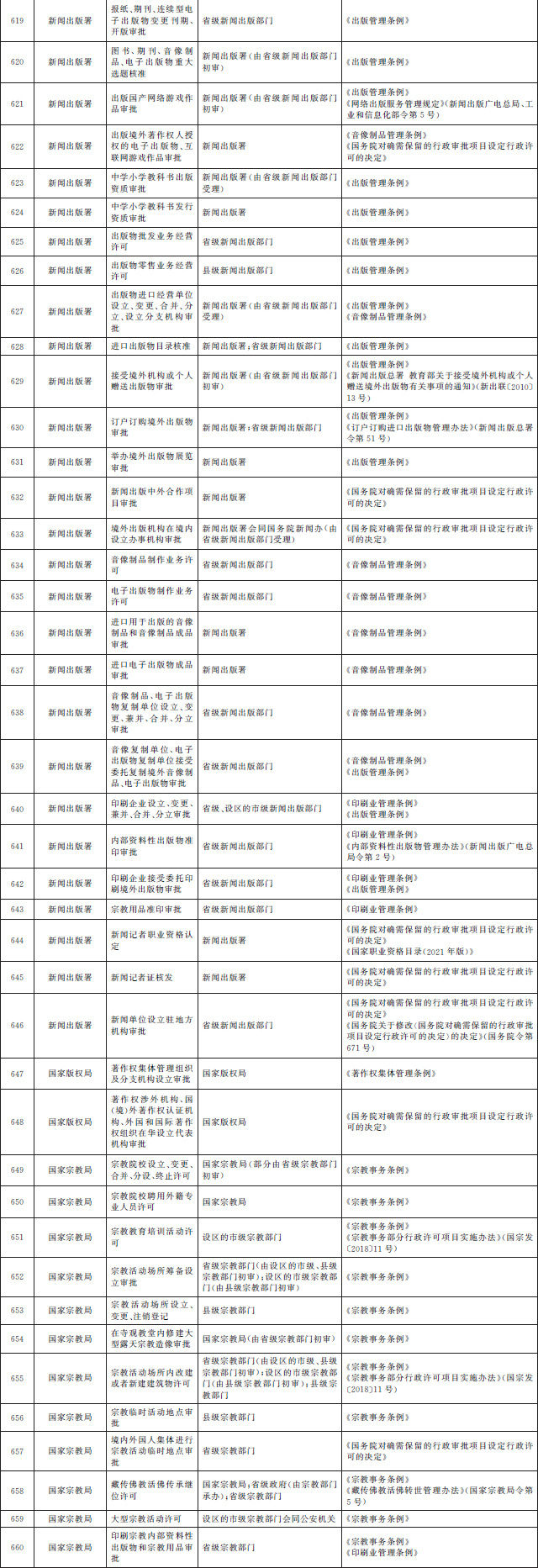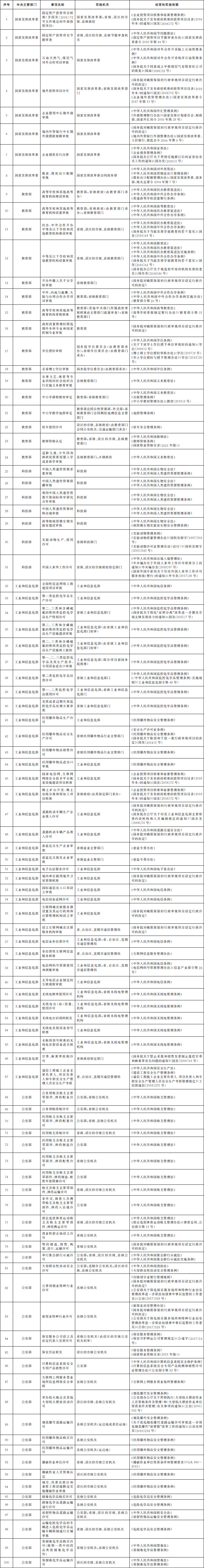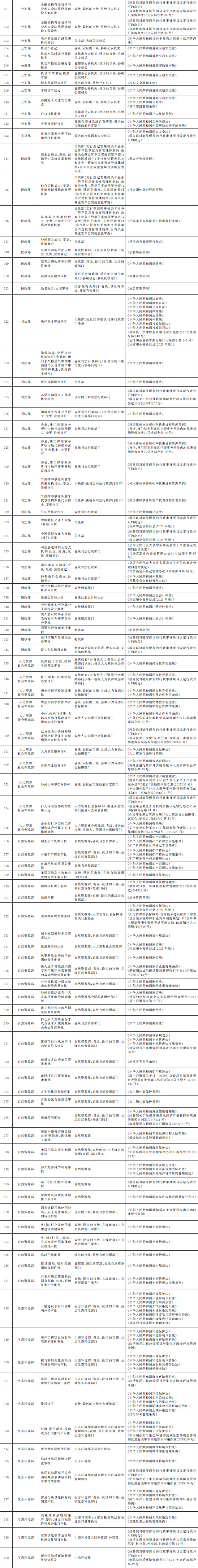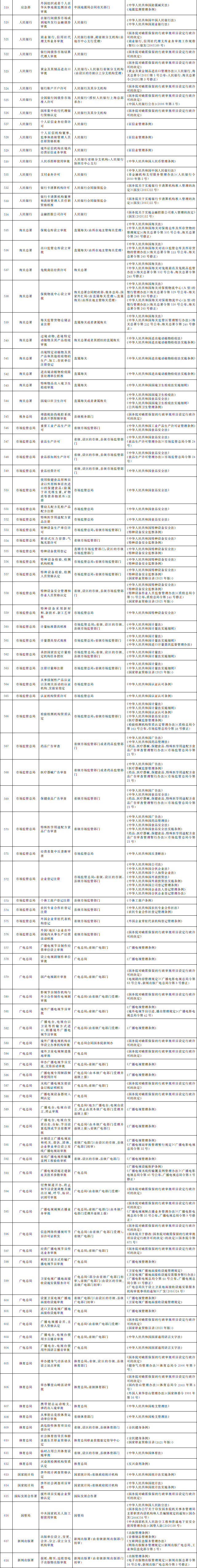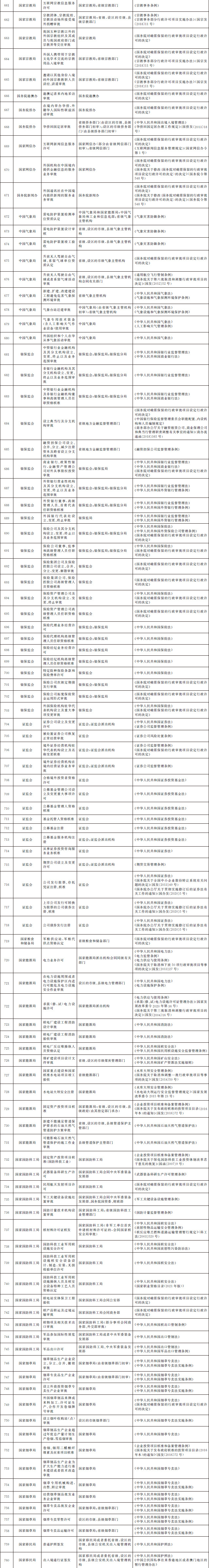 法律、行政法規(guī)、國務(wù)院決定設(shè)定的行政許可事項清單